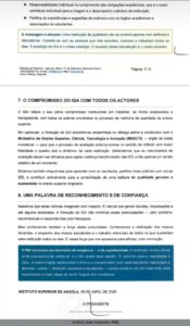 Mais de três cursos ministrados no Instituto Superior de Angola (ISA) não foram acreditados pelo Instituto Nacional de Avaliação, Acreditação e Reconhecimento de Estudos do Ensino Superior (INARES), por incumprimento de requisitos legais e técnicos exigidos para o funcionamento.